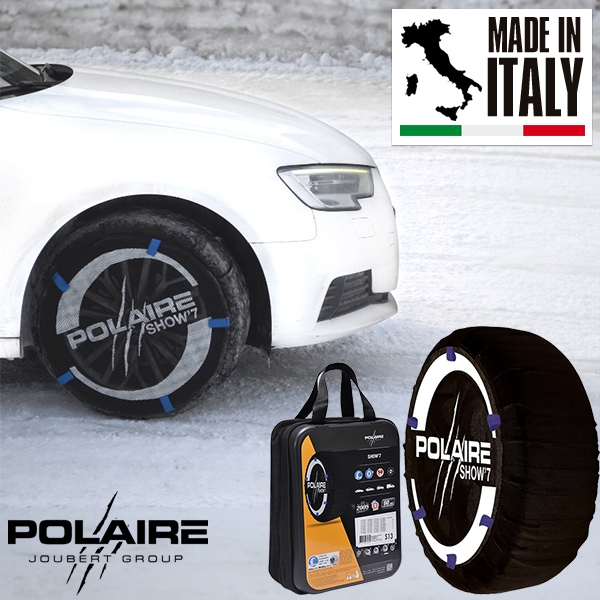 フランス・イタリア・イギリスなどEU諸国で特許取得済み!! EU規格の""ONORM""を認定取得しております。 ""ONORM""とはEU諸国をはじめ世界75か国が認めた格付機関です。 Show'7はこの格付機関に認定され大手の自動車メーカーにも純正採用されている高品質な製品です。 一般的にスリップやハイドロプレーニング現象はタイヤと路面の間に水の層ができ、グリップ力が低下することで起こります。 布製のチェーンを使用することで水を吸収し、またタイヤの回転による遠心力で水を弾きます。 特にこのShow'7は全体が継ぎ目なくシームレスに製造されており、他製品より破損しにくいのが特徴です。 また布製のためリムやフェンダーを傷つけることなく、簡単に取り付けることができます。 装着方法 1.奥側からタイヤの上半分に装着します。 2.車両を動かしてタイヤを半回転させます。 3.残りの半分をタイヤに被せます。 4.取付時に全体がタイヤに被っていれば、 車が進むことで自然に適切なポジションに収まります。 脱着方法 1.ブルーのタグを持って、斜め下に引っ張って引き出します。 2.引き出したスノーソックスをタイヤの下部まで完全に下ろします。 3.徐行運転を行い、スノーソックスの上から車を移動させると自然に外れます。 多くの布製滑り止めと異なり表裏がありませんので、短時間でのお取り付けが可能です。 他社製品にあるようなホイール部分への覆いもありませんので、方向性もありません。 取り付け時に製品全体がタイヤにかぶっていれば、車が進むことで適切なポジションにおさまります。 チェーン規制対応 2018年国土交通省により施行されたチェーン規制」に対応しています。 また2020年に欧州標準化委員会が設定した 乗用車用の冬季滑り止め装置規格「EN16662-1」にも認証済みです。 急な降雪時の保険として常備しておくのもオススメです。 |