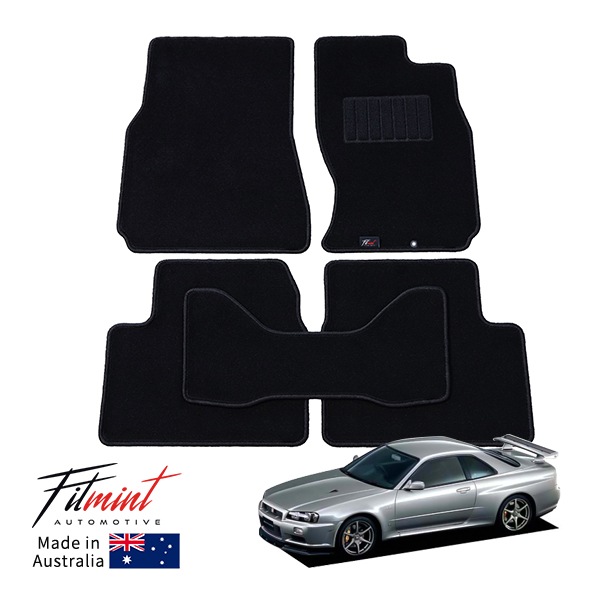 【FITMINT 正規品】 日産 スカイライン 2ドアクーペ GT-R GTT 4WD R34 BCNR34 フロアマット カーペットマット ブラック 前後セット