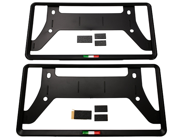 ナンバープレートに強度と高級感をプラス 落ち着いたマットブラック 仕様に追加 材質:ABS樹脂 新基準対応のフレームにイタリア国旗をあしらっています |